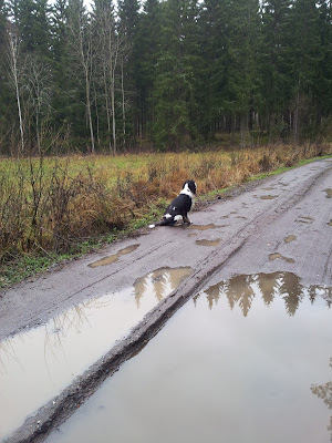 När bollen var loss la vi ner kast-träningen. I stället fick jag åka bil hem till Tigermatten, som jag nu döper om till Extramatten, och där blev jag till min stora lycka lämnad och fick gå på långpromenad och vara sällskapshund i många timmar! Vilken tur jag har som har bästa Extramatten!